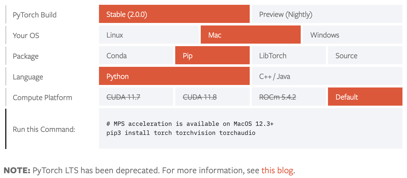 파이토치 공식 페이지에서 설치 방법을 확인해보았더니, 2.0.0 버전은 cuda 11.7 부터 지원하는 듯하다. 그런데 내 환경은 CUDA Version: 11.6이다.