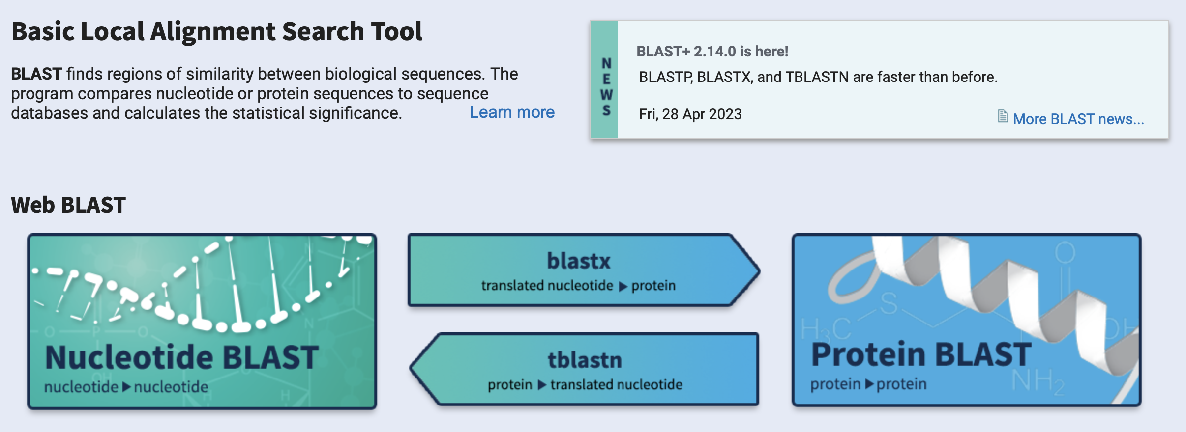 위는 BLAST라는 생물정보에서 사용하는 서열 정렬(alignment) 툴이다. 설명을 보면, BLAST를 통해서 생물학적 시퀀스 간의 유사성이 있는 위치를 찾을 수 있다고 하며, 내가 가진 서열 정보와 시퀀스 데이터 베이스의 시퀀스를 비교하고 통계적 유의성을 계산해준다고..
