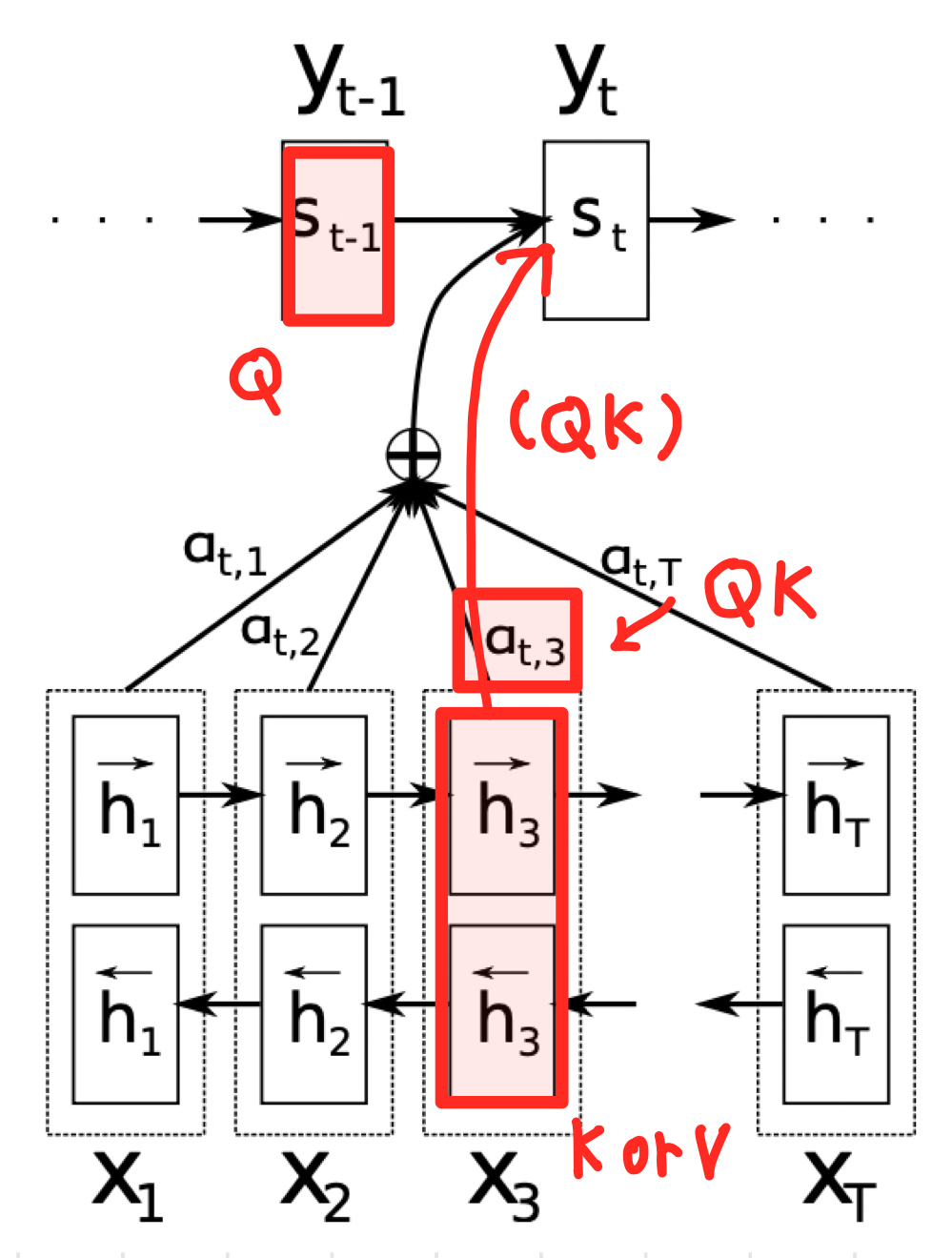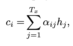 이해한 내용 ➡️ 여기서 hj는 입력 문장의 j번째 단어이고, aij는 j번째 입력 토큰의 영향력으로, ci에는 입력 문장 중 집중(Attention)해야 하는 부분에 집중하여 얻은 결과를 모두 더한 값이 들어감