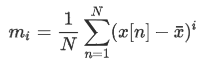 g1은 m3를 m2의 3/2로 나누어 계산하는데, central moment인 mi의 정의는 아래와 같다.