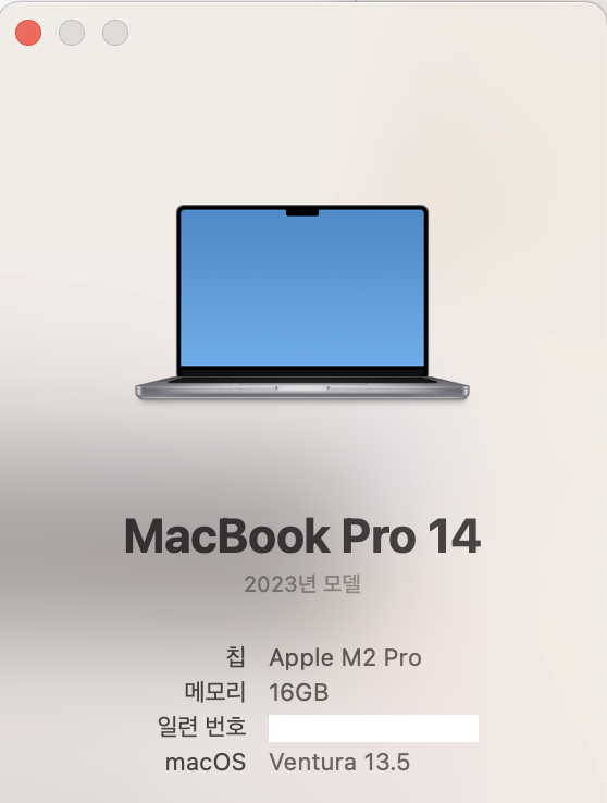 Darwin [LAPTOPNAME].local 23.0.0 Darwin Kernel Version 23.0.0: Fri Sep 15 14:43:05 PDT 2023; root:xnu-10002.1.13~1/RELEASE_ARM64_T6020 arm64반응형