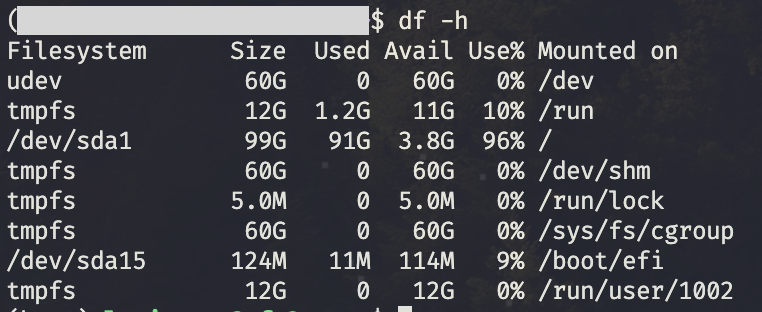 5. 스토리지 (주로 / 에 마운트 되어 있는 것: 99GB)