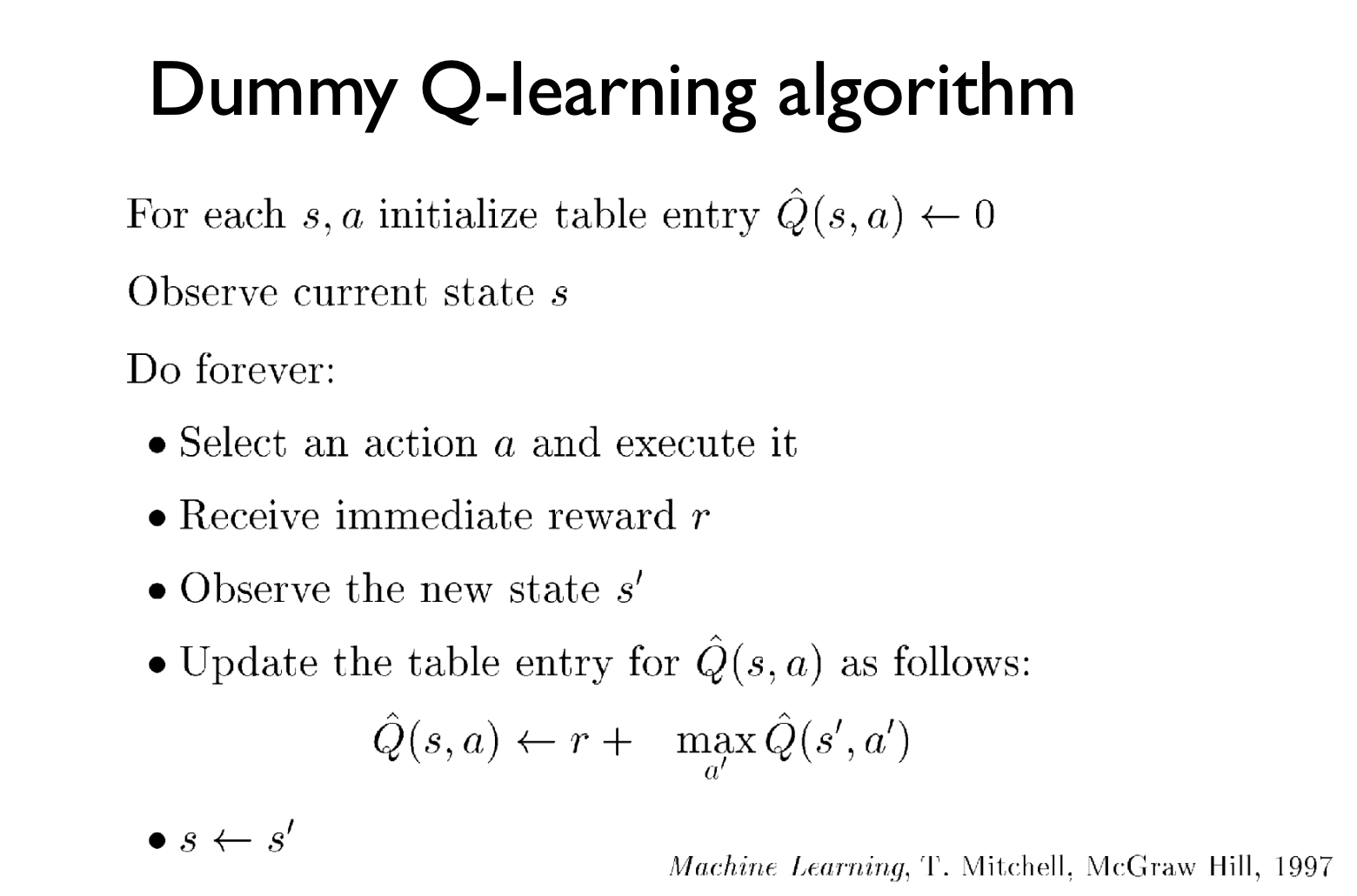 4) table entry를 업데이트 Q^(s, a) <- r + max a' Q^(s', a')
